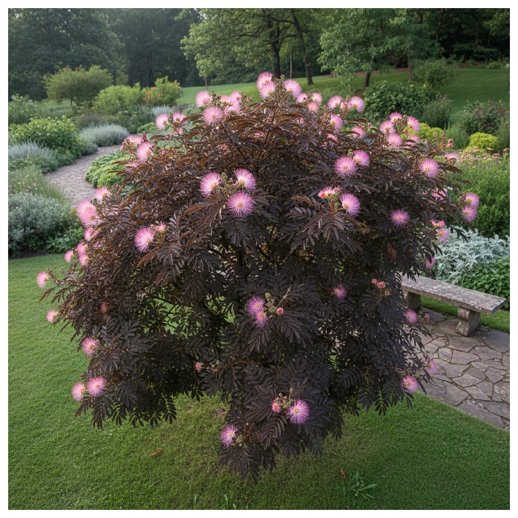 Albízia ‘Summer Chocolate’ je ideálnou voľbou pre záhradkárov, ktorí chcú do svojho priestoru vniesť exotický, elegantný strom s tmavofialovými listami a pôsobivým letným kvitnutím. 🌿✨