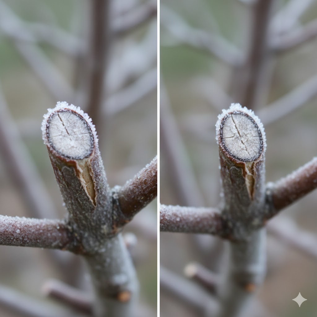 Vidíte suchý konár a chcete ho hneď odstrihnúť? Zadržte. Rez v silných mrazoch otvára „ranu“, cez ktorú mráz prenikne hlboko do pletív rastliny.