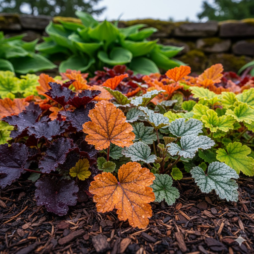3. Heuchery (Heuchera) – Farebný ohňostroj bez kvetov