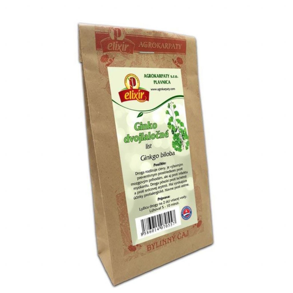 Použitie: Rozširuje cievy, je výborným preventívnym prostriedkom proti mozgovým príhodám, ale aj proti infarktu myokardu. Droga pôsobí proti ischémii a proti srdcovej arytmii. Má vynikajúce účinky protialergické, hlavne proti astme. Zloženie: Ginko dvojlaločné – list /Ginkgo biloba/. Príprava: Lyžicu zalejeme do 2 dl vriacej vody a v prikrytej nádobe necháme lúhovať 5 – 10 minút.Dodatočné parametre