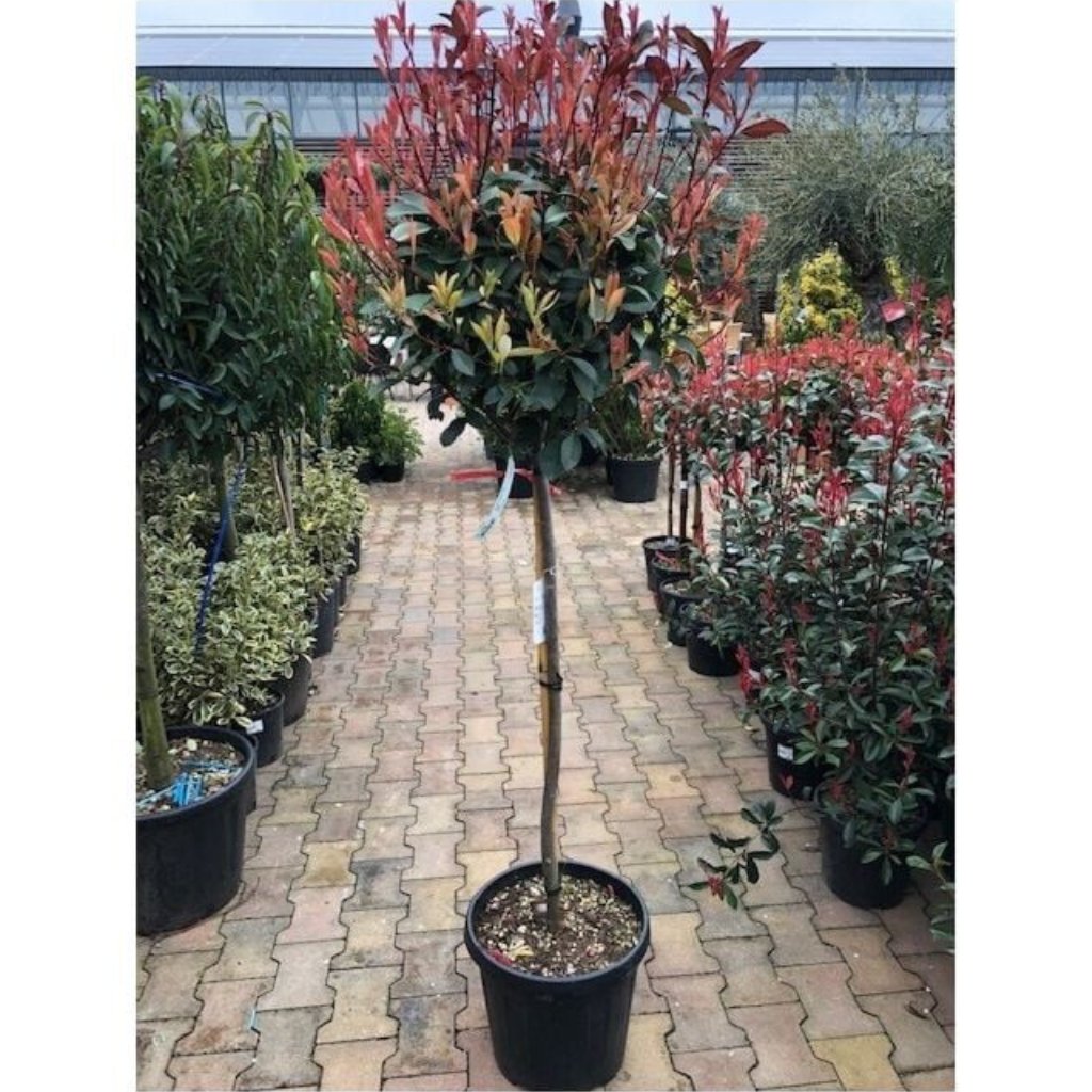 Photinia ‘Red Robin’ vo forme 1/2 kmienka je elegantný solitér, ktorý dodá vonkajšiemu priestoru štýl, farbu a architektonickú líniu.