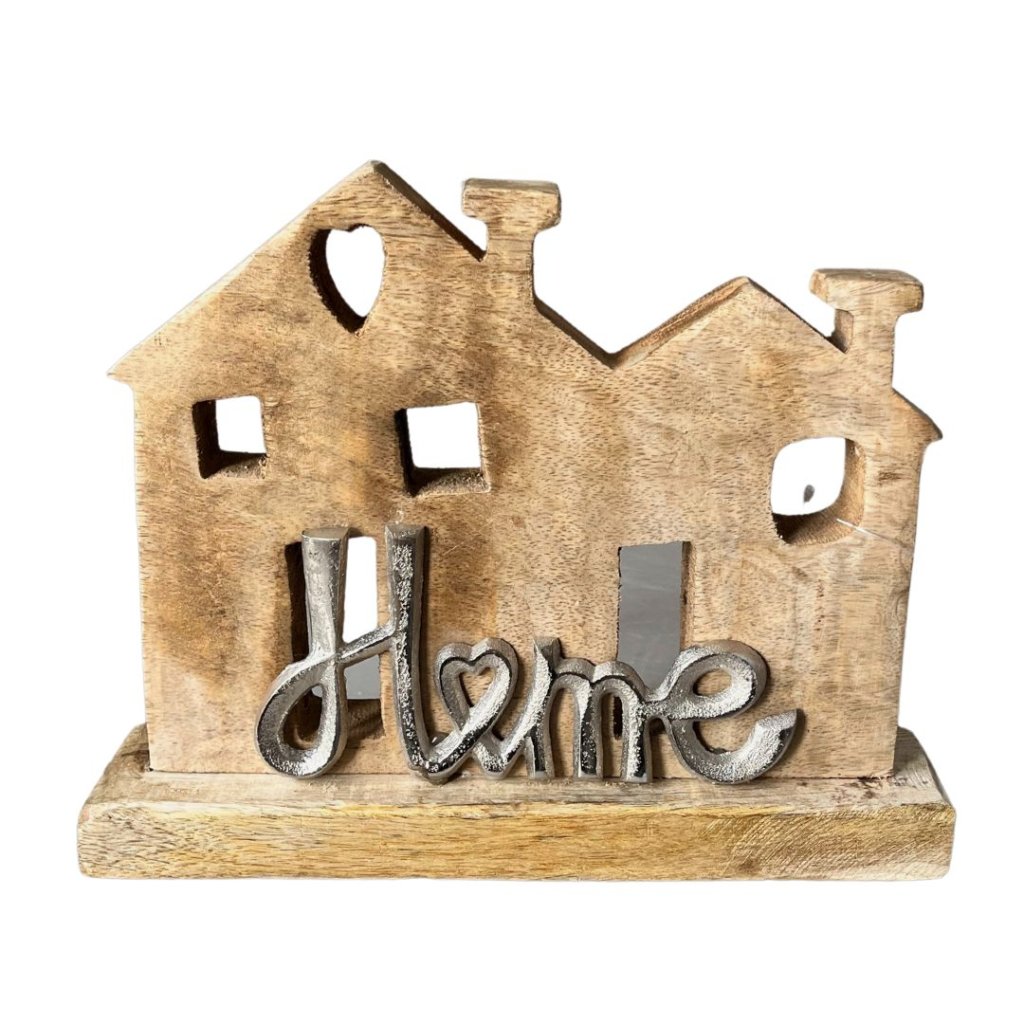 Drevený vianočný domček s kovovým nápisom HOME nesmie chýbať v žiadnom Vianočnom prostredí. Materiál dekorácie je drevo a kov.Dodatočné parametre