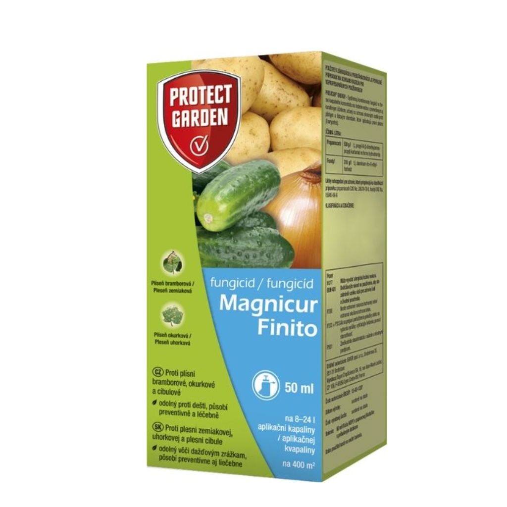 Účinné látky: fluopicolide 62,5 g/l a propamocarb - hydrochlorid 625 g/l. Pôsobenie prípravku: za vysokú biologickú účinnosť fungicídu Finito Magnicur zodpovedajú dve originálne účinné látky. Vďaka ich synergickému pôsobeniu sú patogénne huby atakované vo všetkých významných fázach ich vývojového cyklu, čo zaručuje mimoriadnu spoľahlivosť účinku a minimalizuje riziko vzniku rezistencie. Fluopicolide je novinkou medzi fungicídnymi molekulami a prvým reprezentantom novej chemickej skupiny acylpicolidov. Pôsobí translaminárne a vykazuje preventívny, kuratívny i antisporulačný účinok. V ošetrených rastlinách je akropetálne redistribuovaný xylémom. Účinkuje vo viacerých vývojových fázach patogéna, a to už niekoľko minút po aplikácii. Pôsobí antisporulačne - zabraňuje uvoľňovaniu, mobilite a klíčeniu spór. Zároveň inhibuje rast mycélia vo vnútri rastlinných pletív. Do spektra účinnosti fluopicolide patrí široká škála hubových patogénov z triedy Oomycetes, najmä Phytophthora infestans, Pseudoperonospora humuli, Peronoplasmopara cubensis, Plasmopara viticola, Peronospora destructor a Pythium spp. Propamocarb - hydrochlorid je osvedčená plne systémová účinná látka vyznačujúca sa originálnym mechanizmom účinku. Inhibuje produkciu a klíčenie zoospór, zároveň zabraňuje rastu mycélia. Je prijímaná listami, stonkami a čiastočne i koreňmi. Akropetálne je rozvádzaná do celej rastliny.Finito Magnicur teda pôsobí systémovo i translaminárne. Vytvára tým optimálne podmienky pre komplexnú ochranu celých rastlín, vrátane nových prírastkov. Vyvážená kombinácia novej účinné látky fluopicolide s propamocarbom - HCL zabezpečuje výbornú účinnosť prípravku proti všetkým známym kmeňom plesne zemiakov vrátane kmeňov vykazujúcich rezistenciu voči starším účinným látkam. Odporúčania pre aplikáciu: