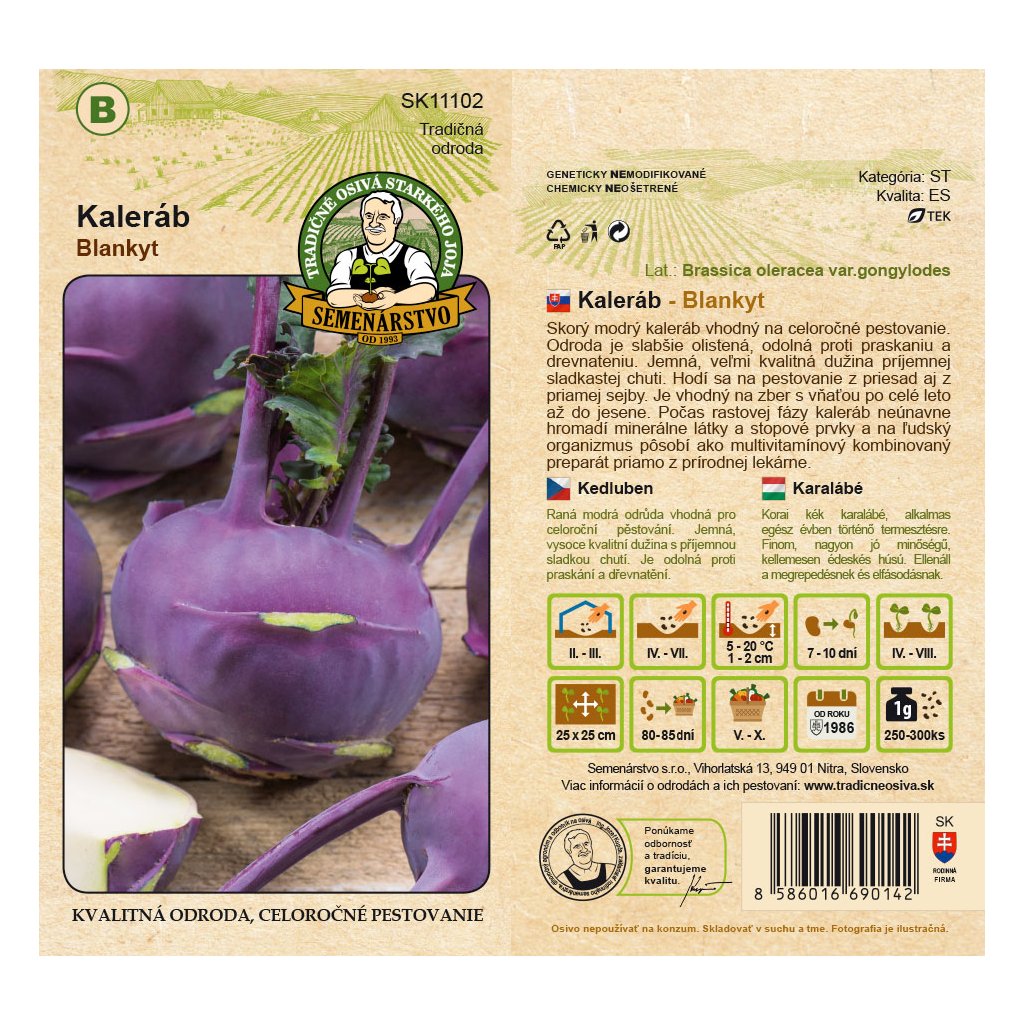 Skorý modrý kaleráb vhodný na celoročné pestovanie. Odroda je slabšie olistená, odolná proti praskaniu a drevnateniu. Jemná, veľmi kvalitná družina príjemnej sladkastej chuti. Hodí sa na pestovanie z priesad aj z priamej sejby. Je vhodný na zber s vňaťou po celé leto až do jesene. Počas rastovej fázy kaleráb neúnavne hromadí minerálne látky a stopové prvky a na ľudský organizmus pôsobí ako mulivitamínový kombinovaný preparát priamo z prírodnej lekárne.