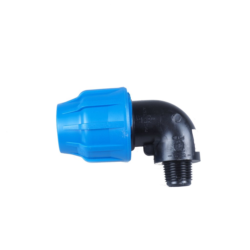 Koleno s vonkajším závitom 25x1/2". Plastové, alebo mechanické PE kolená sa používajú na rozvod pitnej vody TUV, napríklad od vodomernej (vodovodnej) šachty, alebo priemyselnej sfére na rozvody technickej vody. Ich nízka cena a veľmi jednoduchá montáž a hlavne demontáž je dôvodom, že PE mechanické kolená sú najpoužívanejšie materiály na spájanie potrubia v zemi. Kolená možno použiť pre: pripájanie domových prípojok a provizórnych rozvodov vody, napojenie sacích potrubí v studniach, kompletizáciu závlahových systémov, potravinárske rozvody ( pivo, víno, ..) dopravu kyselín, zásad, roztokov solí, priemyselné rozvodyDodatočné parametre