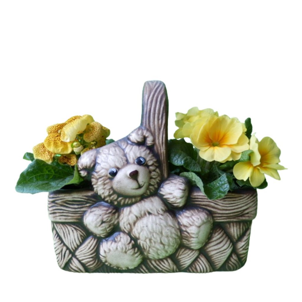 Česká ručná výroba. Keramický kôš s medveďom. Vhodný na ďalšie nadekorovanie alebo samostatne. Odporúčame vysadiť živý materiál, napríklad skalničky alebo vresy. Rozmery: 22x12x20 cm. Keramika je vhodná do exteriéru ale aj do interiéru.Dodatočné parametre