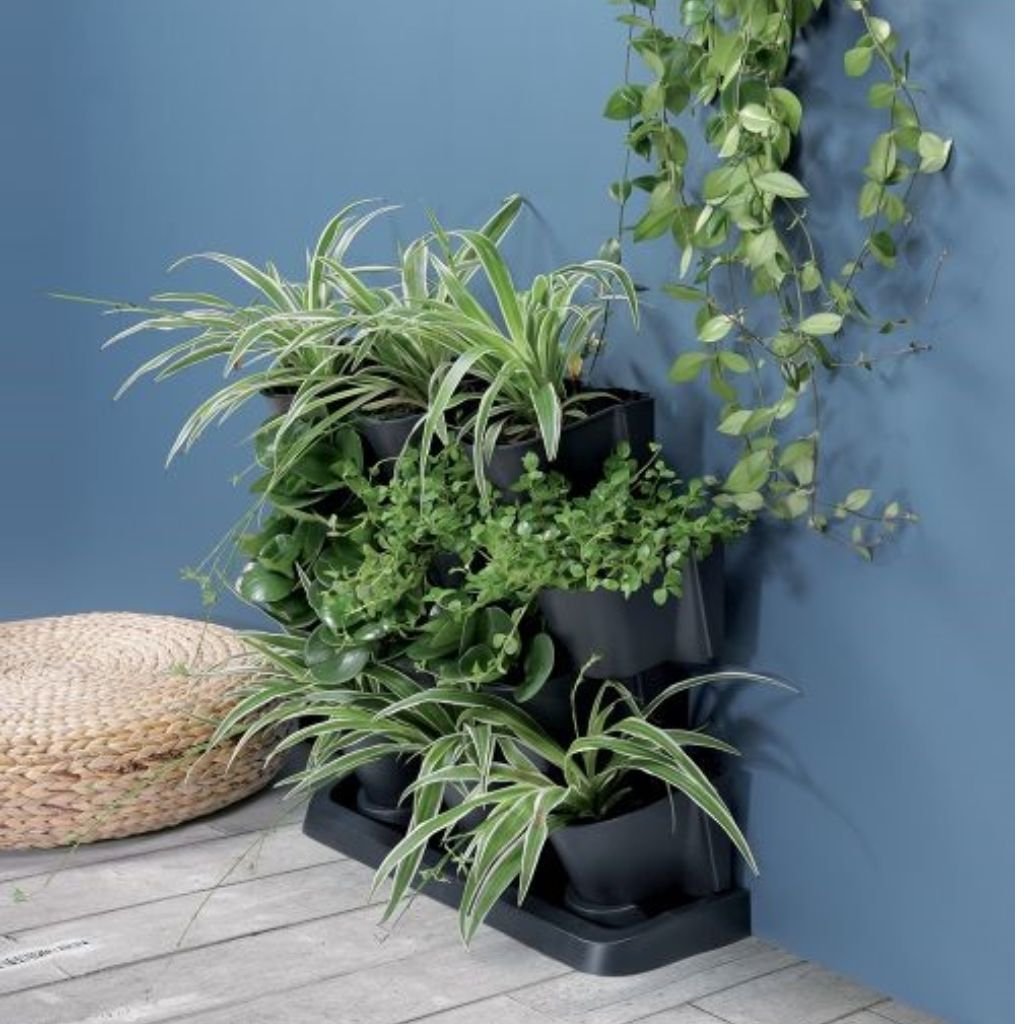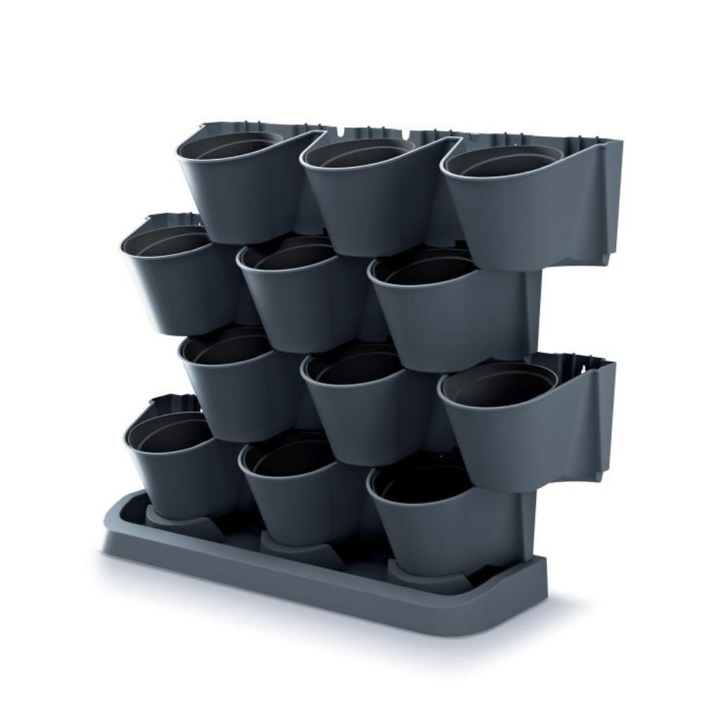 Sada prenosných vertikálnych kvetináčov s odkvapkavačom pre efektívny odtok prebytočnej vody. Sada funguje na systéme komplexného prietokového zavlažovania rastlín. Je vhodná do záhrady, na terasu či do interiéru. Rozmery sady sú 68,5x19x54,6 cm.