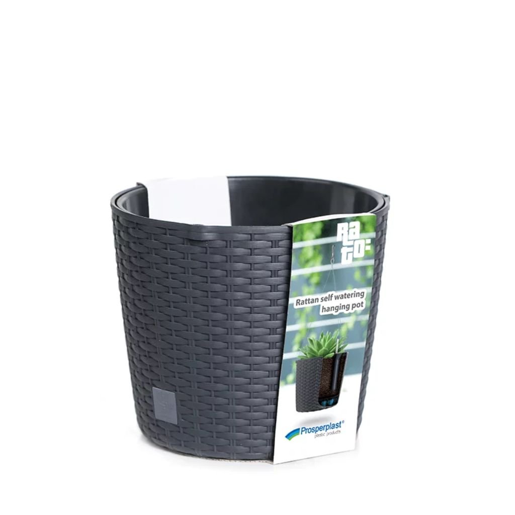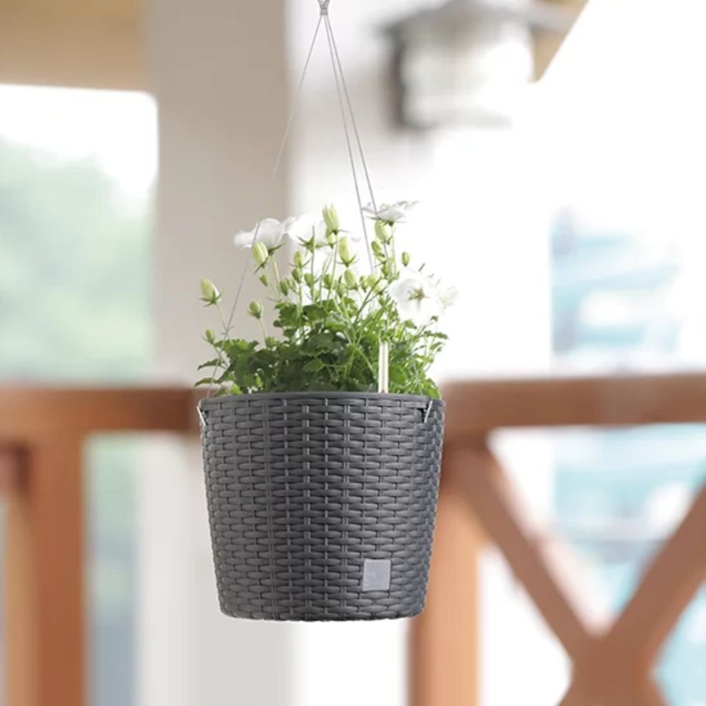 Závesný kvetináč je vybavený zavlažovacím systémom, vďaka ktorému majú rastliny dodávané potrebné množstvo vody. Ide o imitáciu ratanu. Kvetináč je vhodné ho umiestniť na terasu ale i do interiéru a to napríklad na menšie. Ľahko sa ošetruje, tiež nemôže používať žiadny čistiaci prostriedok. Kvetináč je v antracitovej šedej farbe.