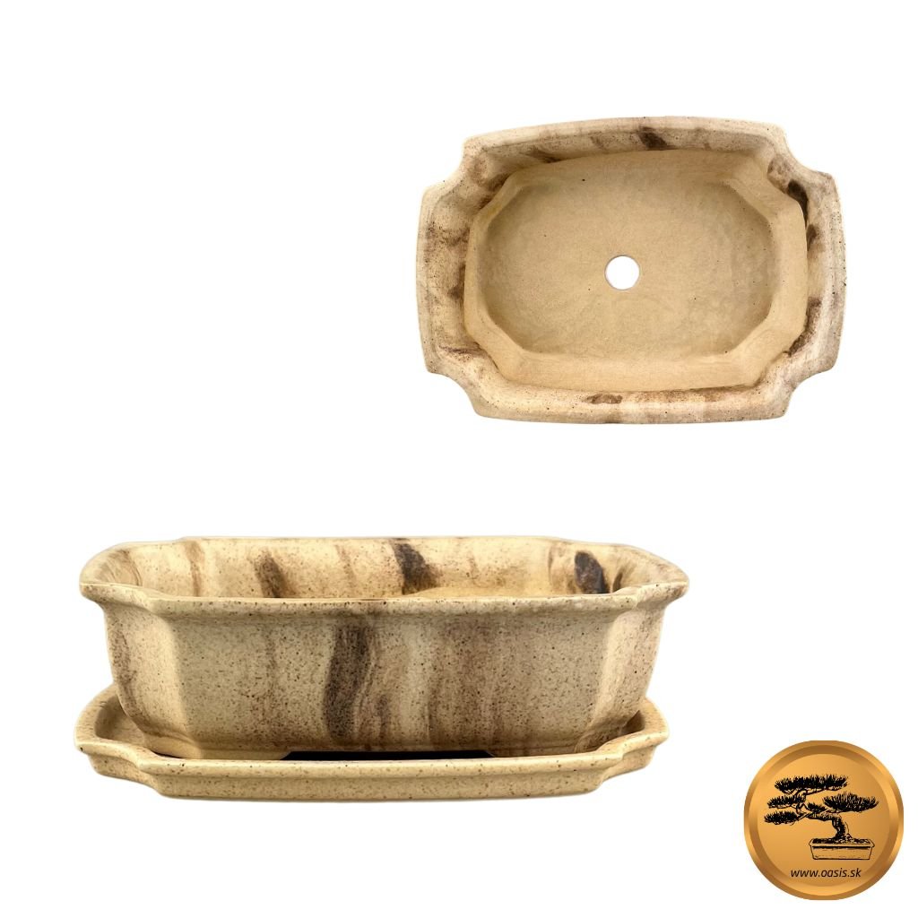 Krásna klasická bonsai miska vyrobená z kvalitnej keramiky zabezpečí krásny japonský vzhľad bonsaju. Je v béžovom farebnom prevedení. Je podobná drevu. Rozmery misky sú 16,5x11,5x5 cm.