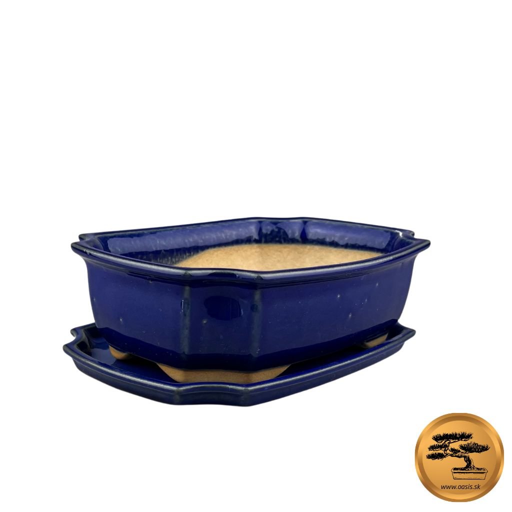 Krásna klasická bonsai miska vyrobená z kvalitnej keramiky zabezpečí krásny japonský vzhľad bonsaju. Je v modrom lesklom farebnom prevedení. Rozmery misky sú 16,5x11,5x5 cm.