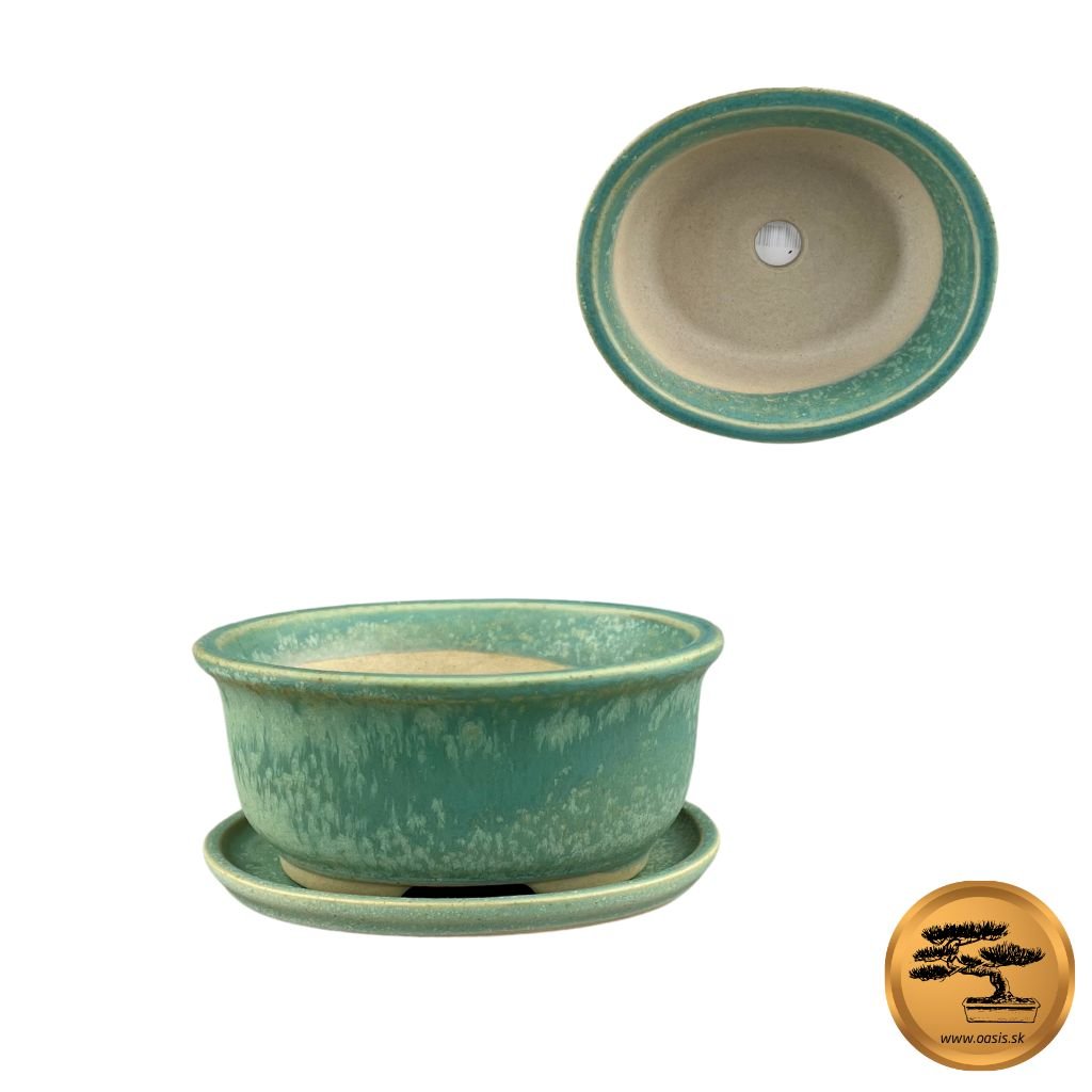Miska s podmiskou na bonsaj z keramiky v rozmere 12x10,5x6. Je v zelenom farebnom prevedení. Je vyrobená z kvalitnej keramiky. Sú kvalitné, pevné a bonsaje v nich sú nádherné.