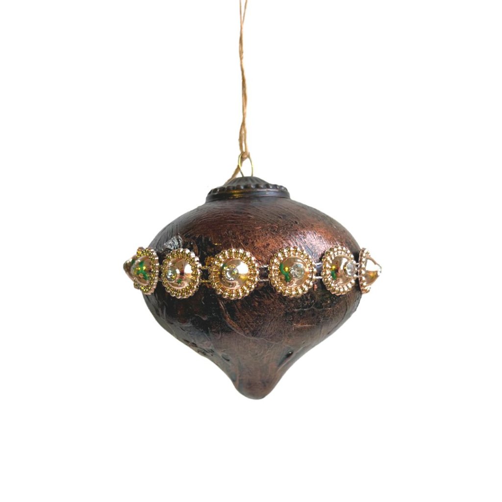 Ručne fúkaná a maľovaná vianočná sklenená guľa.