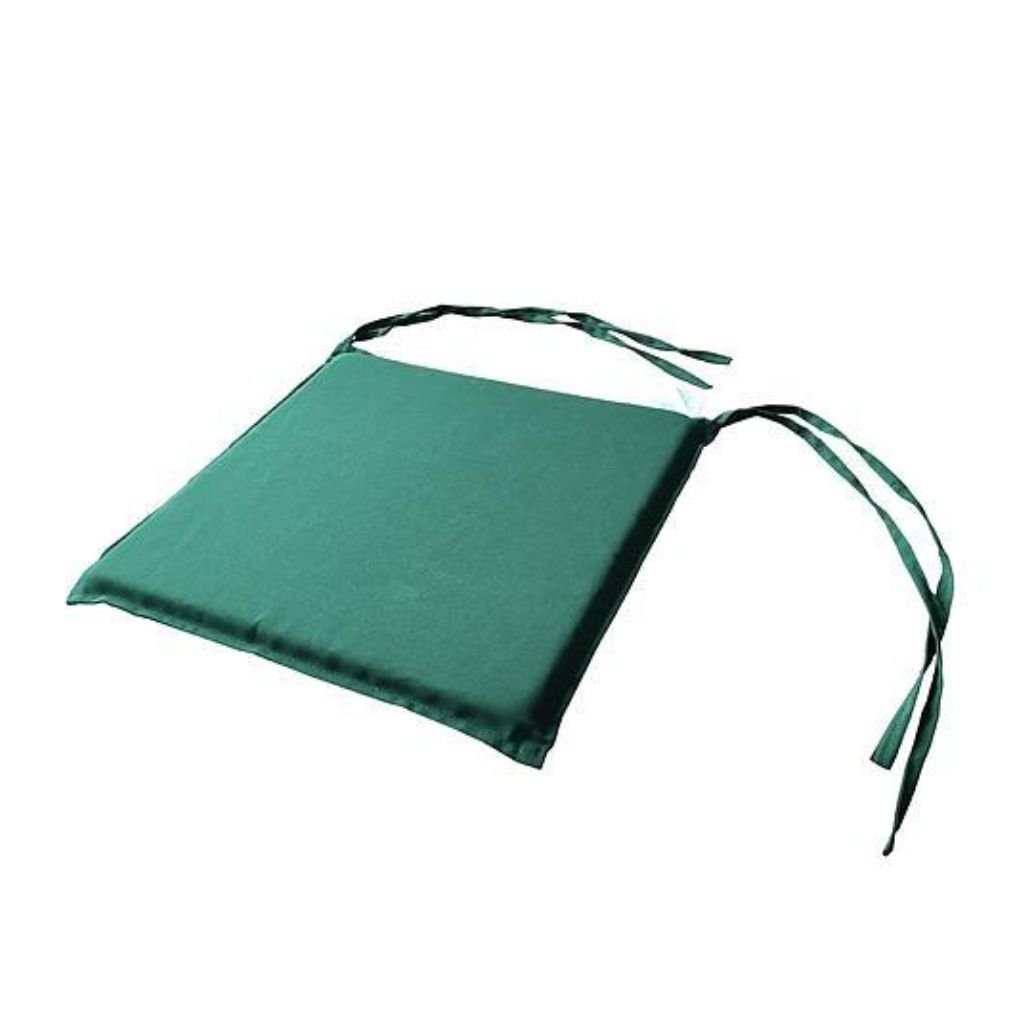 Zelená podložka slúži ako podsedák na stoličku. Je vyrobená zo 100% bavlny a polyesteru, čím poskytuje pohodlné a mäkké sedenie aj na tvrdších, napríklad drevených alebo kovových stoličkách. Rozmery podložky sú 40 x 35 x 2 cm. Podložku je potrebné umiestniť na sedaciu časť stoličky a následne priviazať o zadné nohy.