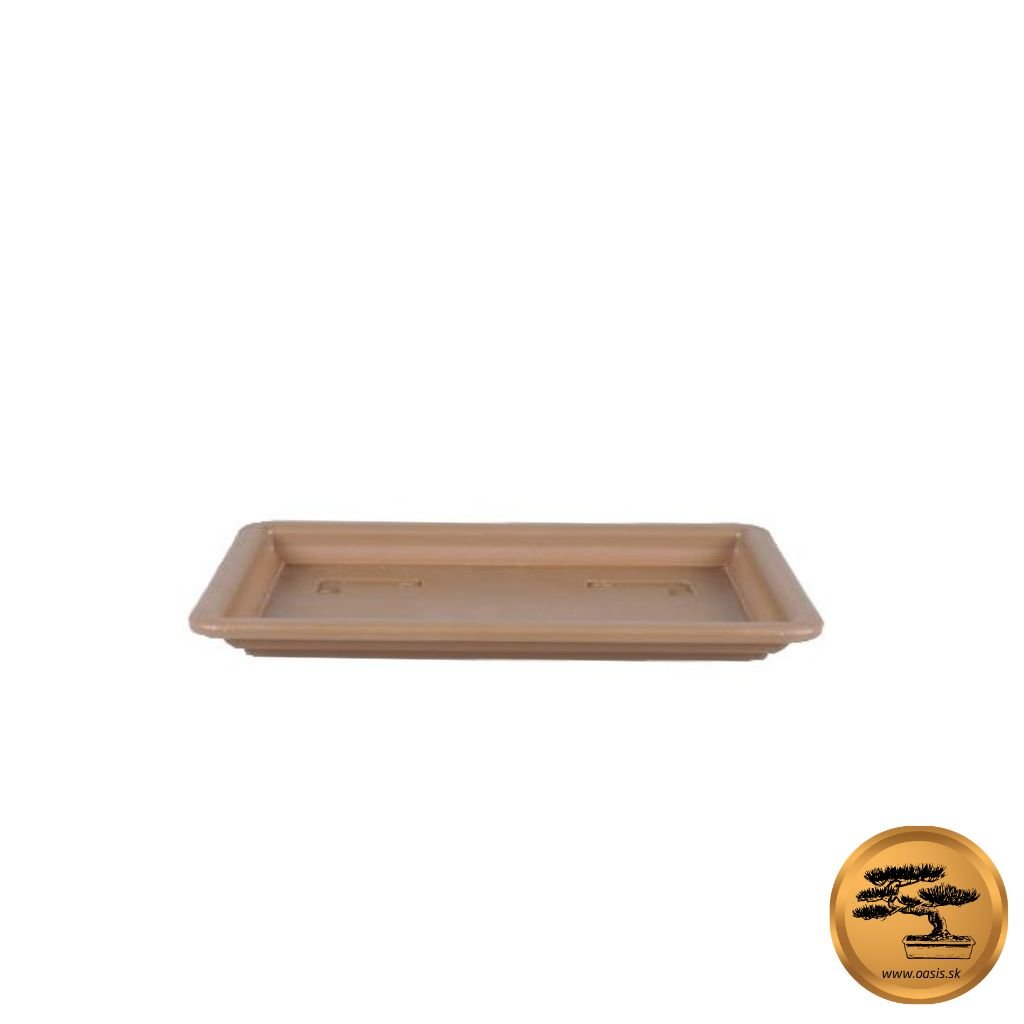 Plastová podmiska k miske na bonsaj. Je vyrobená z odolného materiálu v hnedej farbe. Je ľahko umývateľná. Veľkosť:21,5 x 15,5 x 2 cm