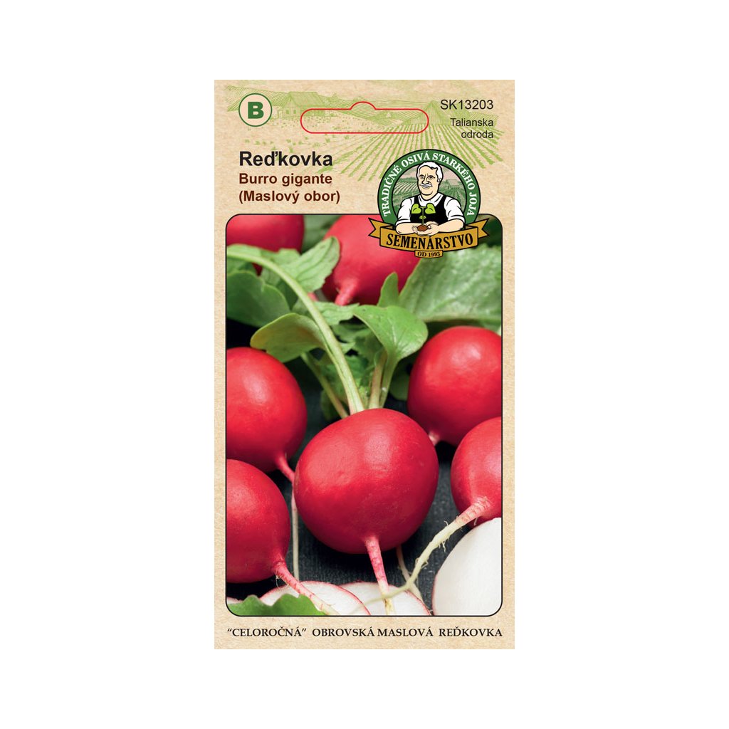 Celoročná odroda reďkovky Burro gigante, ktorá je veľmi šťavnatá a má jemne korenistú chuť.