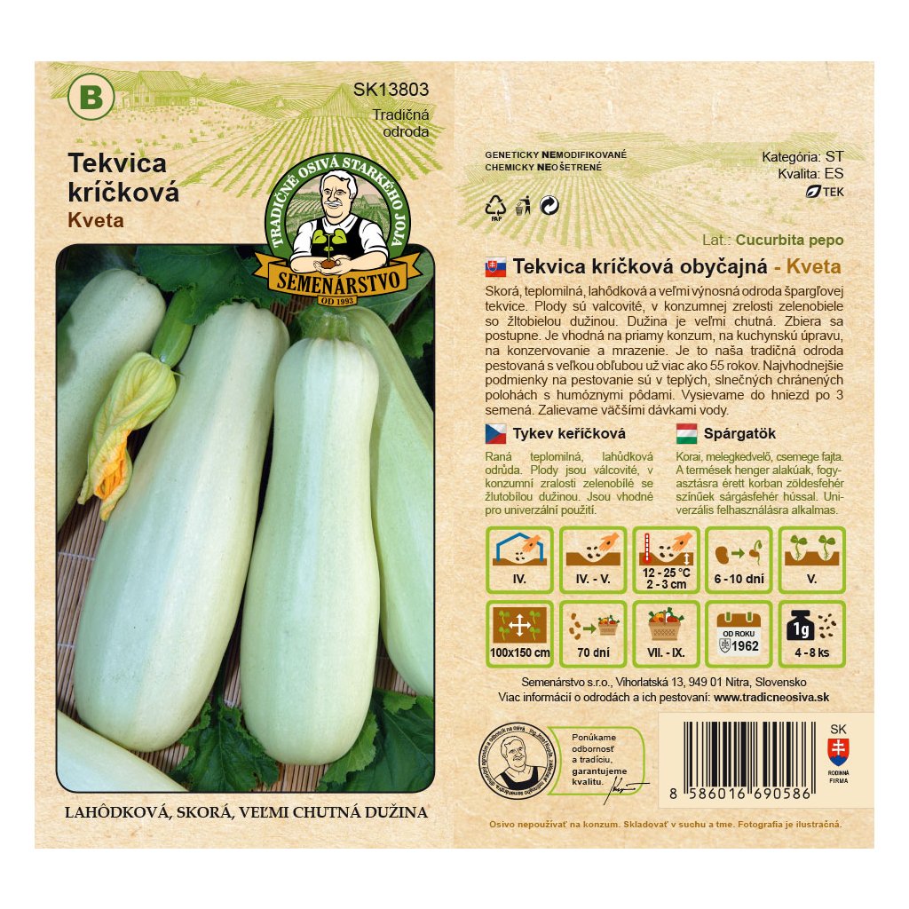Skorá, teplomilná, lahôdková a veľmi výnosná odroda špargľovej tekvice. Plody sú valcovité, v konzumnej zrelosti zelenobiele so žltoubielou dužinou. Dužina je veľmi chutná. Zbiera sa postupne. Je vhodná na priamy konzum, na kuchynskú úpravu, na konzervovanie a mrazenie. Je to naša tradičná odroda pestovaná s veľkou obľubou už viac ako 55 rokov. Najvhodnejšie podmienky na pestovanie sú v teplých, slnečných chránených polohách s humóznymi pôdami. vysievame do hniezd po 3 semená. Zalievame väčšími dávkami vody.