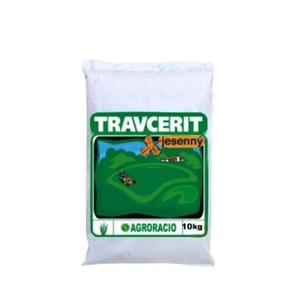 Vhodné obdobie na aplikovanie hnojiva je v mesiacoch september až október. Jeho použitie pôsobí preventívne proti zimným hubovým ochoreniam, tvorbe machu a vyzimovaniu trávnika. Zloženie hnojiva tvorí dusík (N) 10%; draslík (K2O); 25% horčík (MgO); 2%železo (Fe) 0,5% a síra (S) 13%. Trávnikové hnojivo Travcerit -jeseň obsahuje zvýšený obsah horčíka a železa - trávniky vyzerajú zelenšie. Spôsob hnojenia: Hnojivo aplikujeme posypovým vozíkom alebo rovnomerným rozhodením ideálne do dvoch strán do kríža. Odporúčané množstvo pri základnom hnojení trávnika na jeseň je 200-300 g/m2.Dodatočné parametre