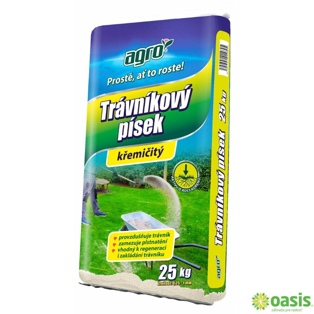 Kremičitý jemný sušený piesok Agro so zrnitosťou 0,25-1 mm je ideálny na zakladanie trávnika aj jeho prevzdušnenie. Pomáha zamedziť plstnateniu a podporuje zakoreňovanie rastlín, čím prispieva k hustému a zdravému trávniku.