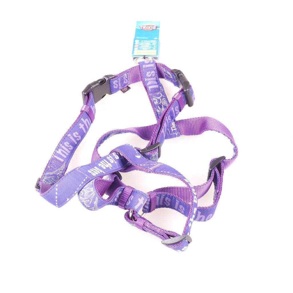 Postroj je plne nastaviteľný (hrudný a bedrový popruh), nebráni Vášmu psíkovi pri pohodlí v pohybe; farba: Lila (fialová), s motívom. Dostupný v 4 veľkostiach.Dodatočné parametre