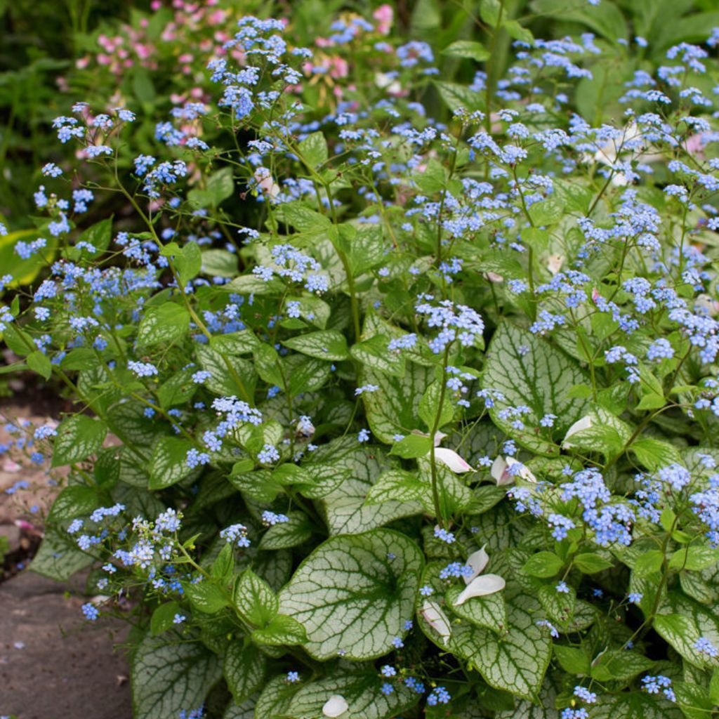 Brunnera je ideálna rastlina, ktorú si vyberiete, ak hľadáte niečo trochu nezvyčajnejšie do jarnej záhrady. Počas apríla a mája je Brunnera 'Jack Frost' pokrytá množstvom malých, jasne modrých kvetov, ktoré vyzerajú skôr ako nezábudky. Tie sú doplnené o krásne srdcovité lístie, ktoré je svetlostrieborno-šedé s výraznými tmavozelenými žilkami.