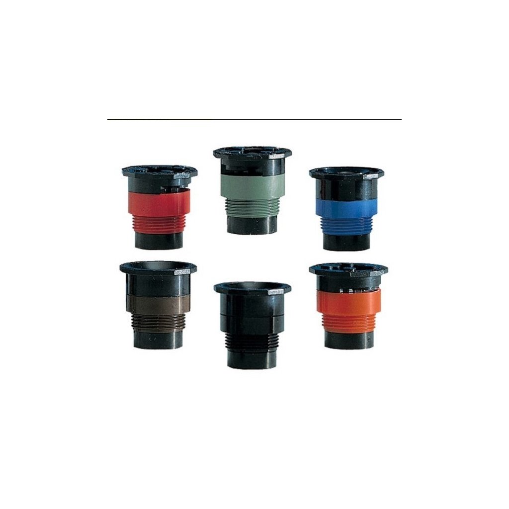 Výhodou je možnosť nastavenia uhla (30-360st.) aj počas zavlažovania; dodávané vrátane filtrov. Vďaka rovnomernému rozloženiu prúdiacej vody zabezpečíte rovnaké množstvo vody na celej postrekovanej ploche. Trysky majú rôzny dostrek - sú od seba farebne odlíšené (zelená - dostrek 2,4 m; modrá - 3 m; hnedá - 3,7 m; čierna - 4,6 m a šedá - 5,2 m).