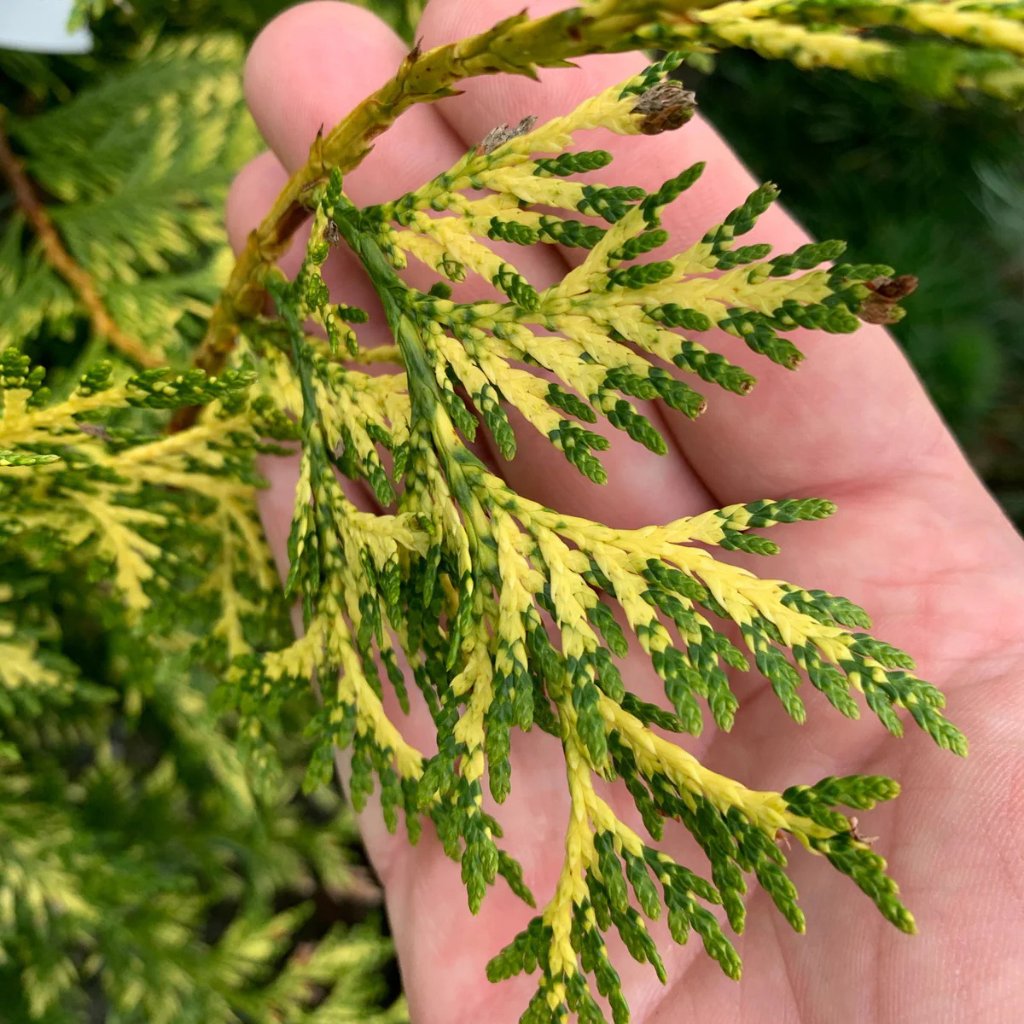 Tuja riasnatá ‘Zebrina’ (Thuja plicata ‘Zebrina’) je výnimočná odroda, ktorá sa od bežných tují odlišuje svojím výrazným “zebrovým” ihličím – tmavozelený základ pretkaný žltými pozdĺžnymi pásmi. Tento vzor je prirodzený, stabilný a robí z rastliny výrazný dekoratívny prvok počas celého roka.