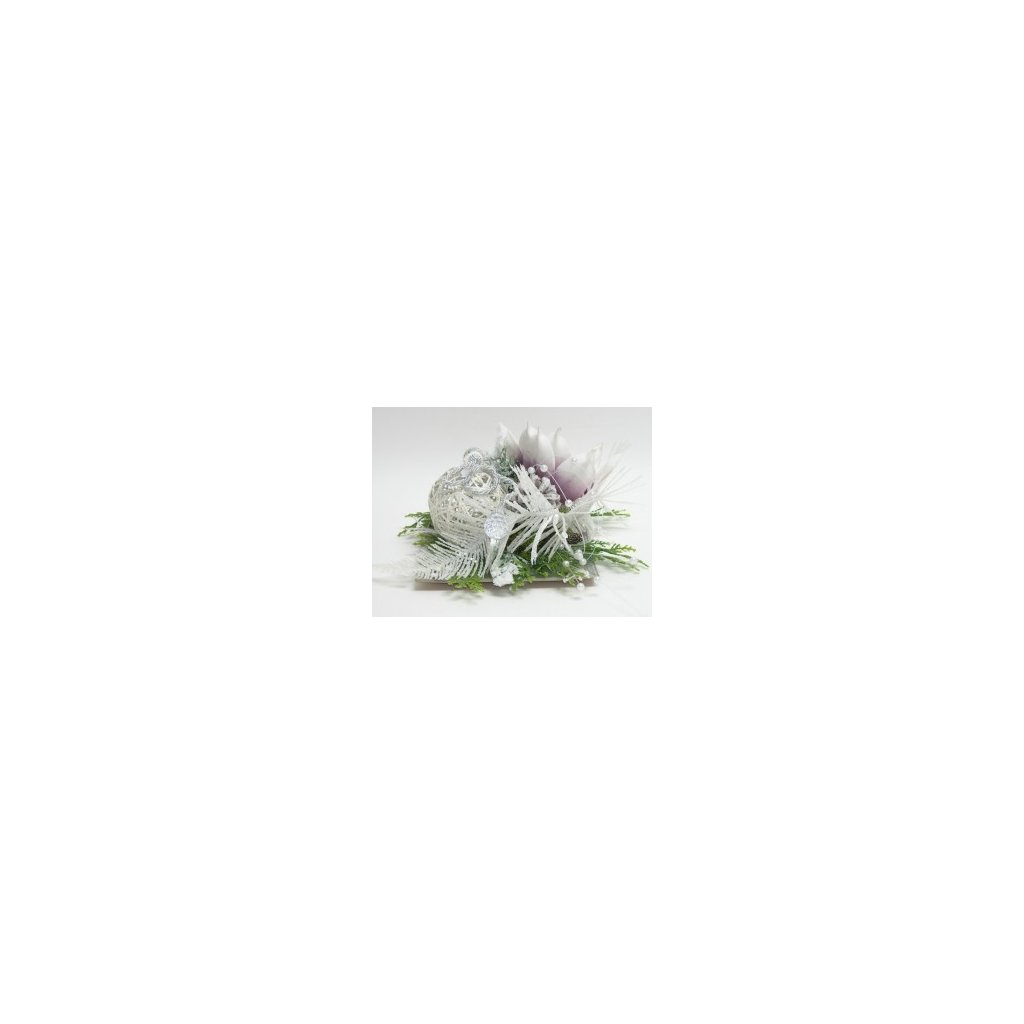 Vianočná dekorácia aranžmán sklo +magnólia 35x25 cm