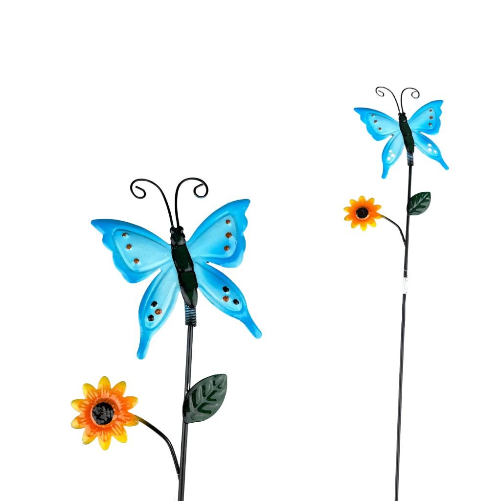 Modrý motýlik ozdobí a dotvorí estetický vzhľad vašej rastlinke v kvetináči alebo je možné ju len zapichnúť voľne do záhrady. Motýlik zabezpečí zaujímavý estetický zážitok vo vašej záhrady. Motýlik je vyrobený z kovu vďaka čomu je odolný a ľahký.